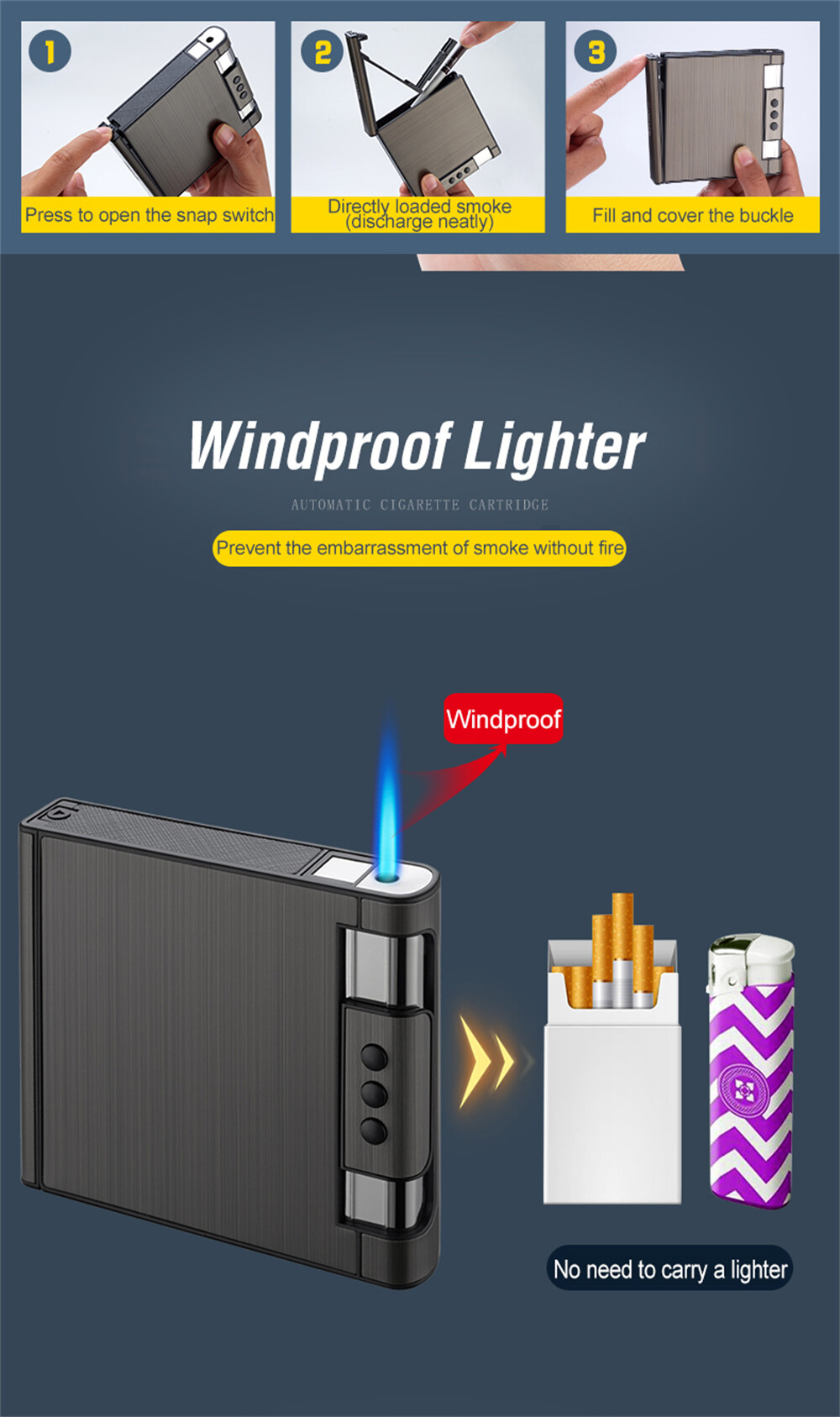 Crafted with meticulous attention to detail, our cigarette case not only securely holds your favorite cigarettes but also boasts a built-in lighter for your utmost convenience. No more searching for a lighter or fumbling with separate accessories – with this innovative product, you’ll have everything you need in the palm of your hand.