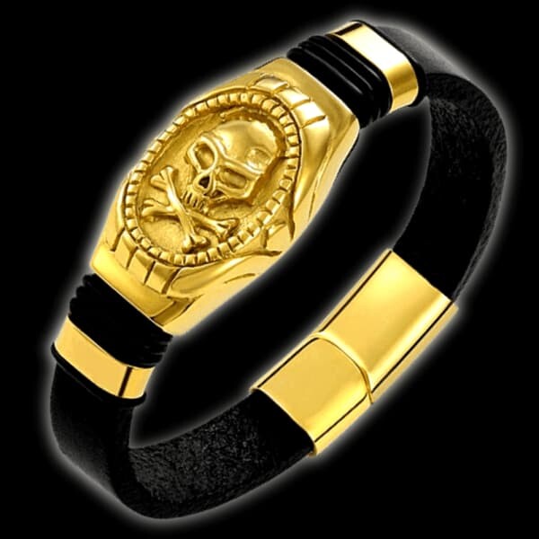 Gold Corsair Skull Leather Bracelet