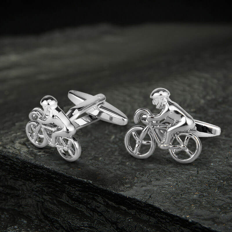 These fun cufflinks are a cycling look that is both unique and eye-catching. Simple silver can be worn with any color shirt without making the outfit look too monotonous.