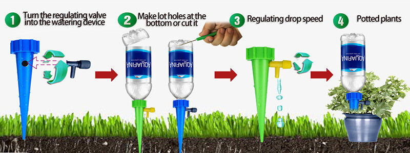 GREAT FOR VACATIONS: By watching the speed the droplets you can adjust how long it will last. You can use 12 oz. to 2l. bottles. It usually slows down with the time so you may have start with a higher and test it few times before best results.