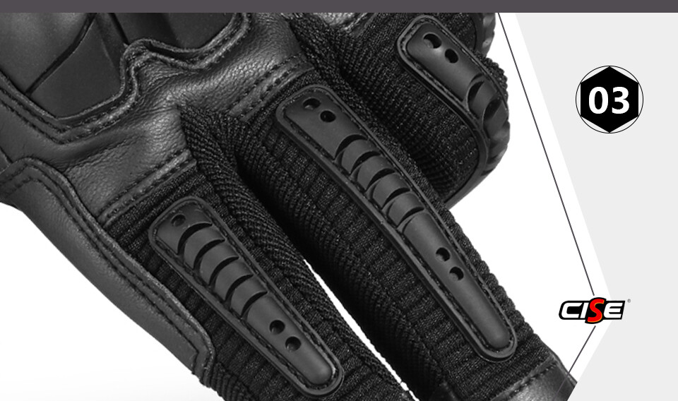 Motorycle gloves is made of durable microfiber pu leather and breathable stretch nylon material, wear-resistant, lightweight and fast drying. Increasing the friendly touching function to thumb and middle fingers part of glove, so you can touch your phone screen sensitively and use it conveniently.
