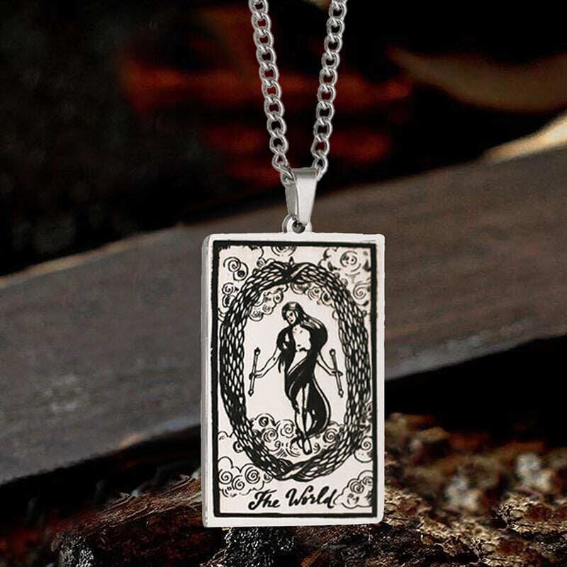 The World Major Arcana Tarot Stainless Steel Necklace